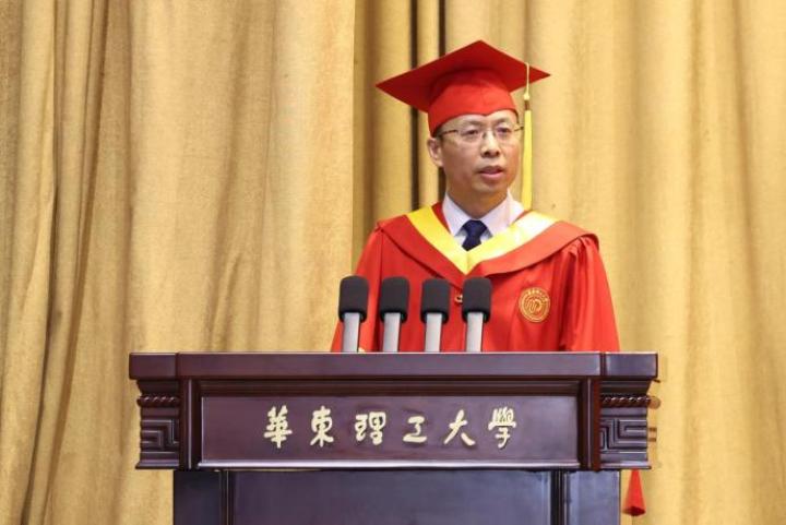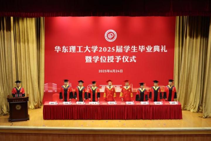 6月24日,华东理工大学2025届学生毕业典礼暨学位授予仪式在徐汇校区逸夫楼报告厅举行。校党委书记蒋传海,校长、校党委副书记轩福贞等校领导,以及各学院、职能部门负责人,专任教师代表等参加典礼。