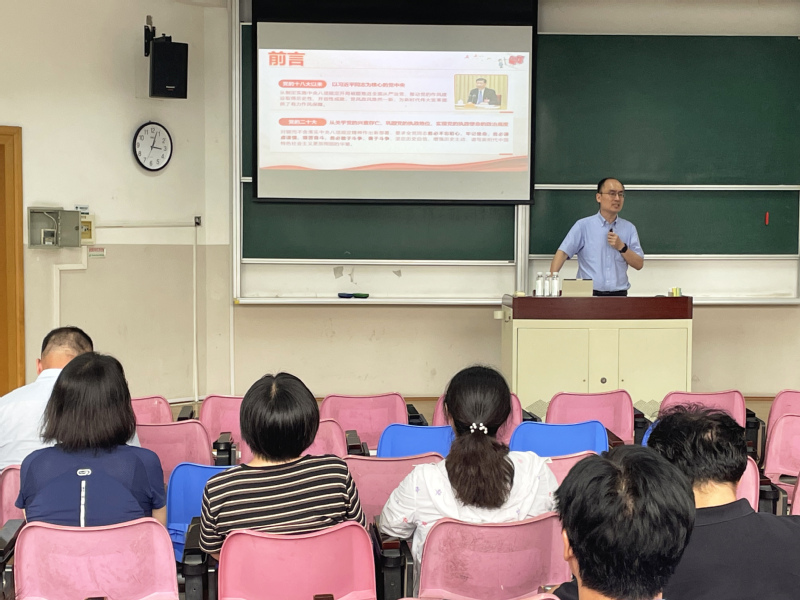 为扎实开展深入贯彻中央八项规定精神学习教育,进一步强化党的作风建设,营造风清气正的教育教学环境,近日,数学学院党委书记鲍亮讲授题为“锲而不舍落实中央八项规定精神,以优良作风护航立德树人使命”的专题党课。学院全体教职工党员参加学习。