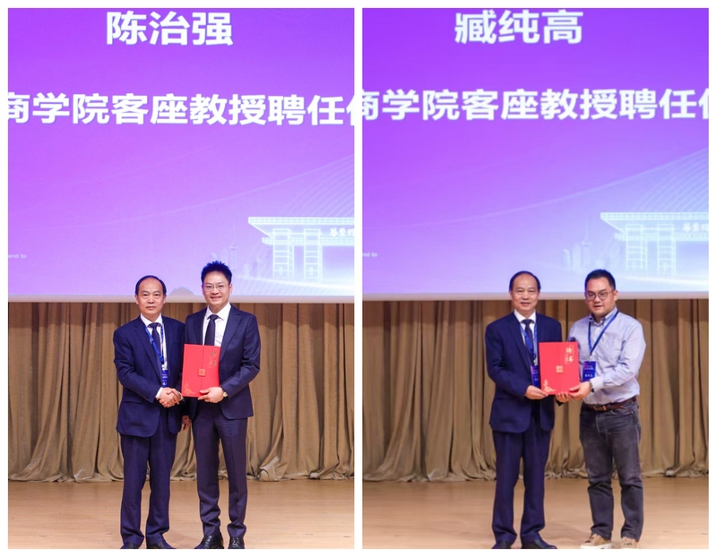 晟碟半导体总经理陈治强、延锋国际总经理臧纯高受聘为商学院客座教授并为与会嘉宾带来了深入产业一线的主题分享。陈治强带领与会人员“走进”未来工厂,解读了包括人工智能、数字孪生、可持续性等高新科技在制造业领域的蓬勃发展。臧纯高聚焦于汽车行业的发展趋势,深度分析了全球汽车市场概况、中国汽车市场的结构性变化以及2025年的车市新风尚。