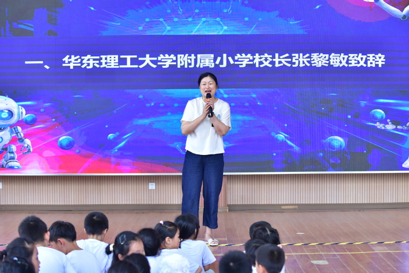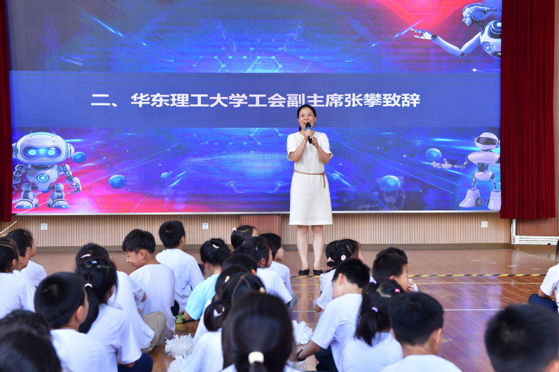 张攀代表华理校工会致辞。她用“三声感谢”总结夏令营的顺利举办:感谢附小团队的专业支持、家委会的倾力协作,更点赞营员们的自律与创造力。也期待孩子们明年再赴科技之约!