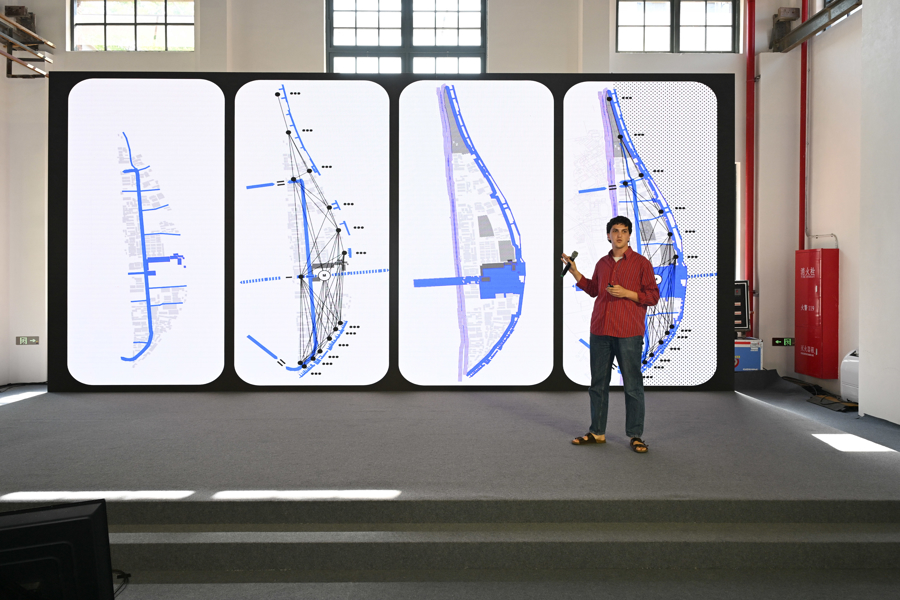 暑期营开营两周来,中西150余名师生按跨学科背景混合编组,形成9个创新小组,每个小组均配备有中外青年教师及资深教授作为指导。他们赴复兴岛实地调研,围绕复兴岛的创新开发,展开深入的学术研讨和实践探索,推动城市数字化转型、生态景观设计及人文功能重塑。