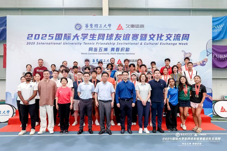 7月25日,由华东理工大学和上海久事体育产业发展(集团)有限公司共同举办的“网连五洲·青春织和——2025中、美、澳国际大学生网球友谊赛”在华东理工大学拉开序幕。来自美国耶鲁大学、达特茅斯学院、斯蒂文斯理工学院、福特汉姆大学、威廉姆斯学院、迪堡大学、维思大学、明德学院、福尔曼大学、雷德兰兹大学,澳大利亚莫纳什大学、阿德莱德大学,以及华东理工大学等13所大学的36位大学生网球运动员和教练齐聚一堂,续写“体育友谊”新故事。