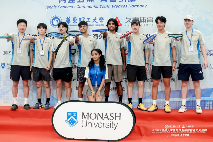 7月25日,由华东理工大学和上海久事体育产业发展(集团)有限公司共同举办的“网连五洲·青春织和——2025中、美、澳国际大学生网球友谊赛”在华东理工大学拉开序幕。来自美国耶鲁大学、达特茅斯学院、斯蒂文斯理工学院、福特汉姆大学、威廉姆斯学院、迪堡大学、维思大学、明德学院、福尔曼大学、雷德兰兹大学,澳大利亚莫纳什大学、阿德莱德大学以及华东理工大学等13所大学的36位大学生网球运动员和教练齐聚一堂,续写“体育友谊”新故事。