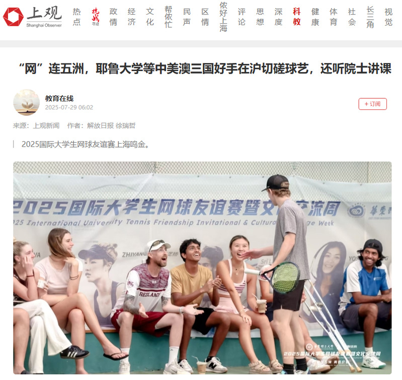 【解放·上观】“网”连五洲,耶鲁大学等中美澳三国好手在沪切磋球艺,还听院士讲课