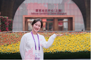 刘姿含连续担任第六届、第七届进博会志愿者,先后服务于咨询处和新闻中心。作为第七届进博会的媒体服务志愿者,她每日筛选海内外优质新闻资讯上传网站。同时,担任校新闻宣传处联络员的她,迅速融入团队,精准分配任务,成为师生间高效的沟通桥梁。