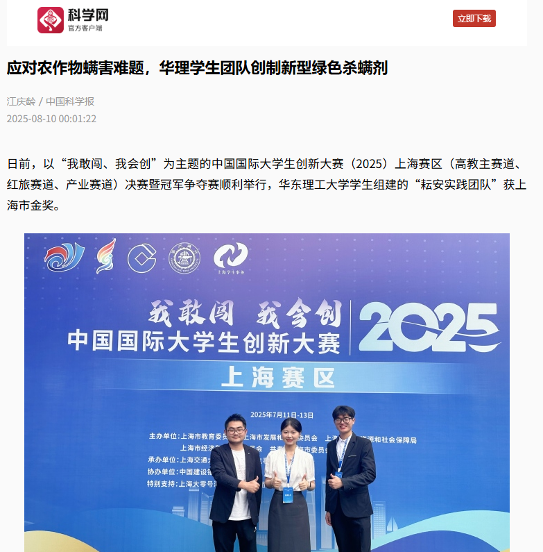 【科学网】应对农作物螨害难题,华理学生团队创制新型绿色杀螨剂