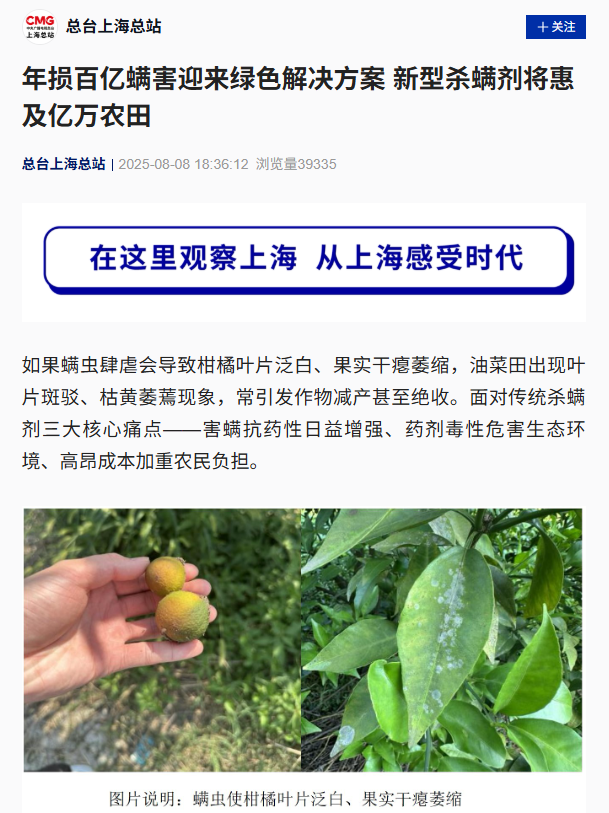 【央视新闻客户端】年损百亿螨害迎来绿色解决方案 新型杀螨剂将惠及亿万农田