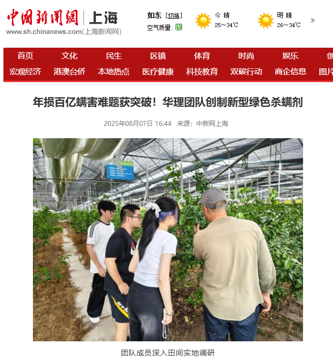【中国新闻网】年损百亿螨害难题获突破!华理团队创制新型绿色杀螨剂