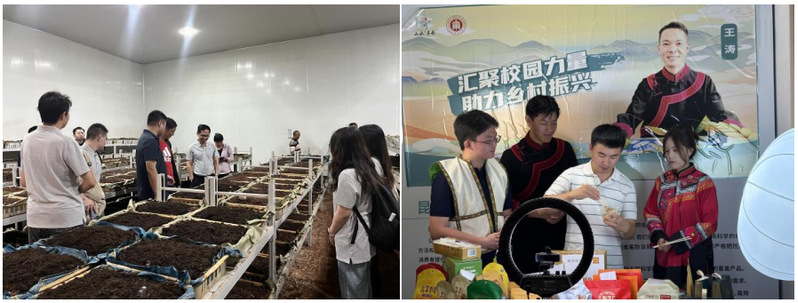 图片说明:团队参观农业基地,并参与当地的助农直播