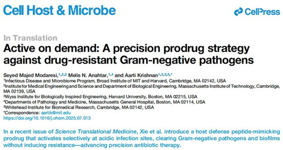 该研究报道了一种感染部位原位激活的宿主防御肽模拟前药设计策略,在实现“生理环境隐形、感染部位激活”响应性精准抗感染治疗的同时,还可将原本因毒性和生物利用度等问题受限的多肽类化合物转化为安全有效的候选药物分子,为开发具有体内应用潜力的新型抗感染药物提供了新思路。研究成果以封面文章发表在Science Translational Medicine(Sci. Transl. Med.2025, 17, 801, eadl4870)。该研究成果最近还被Nature Reviews Drug Discovery作为研究亮点报道(https://doi.org/10.1038/d41573-025-00118-7)。
