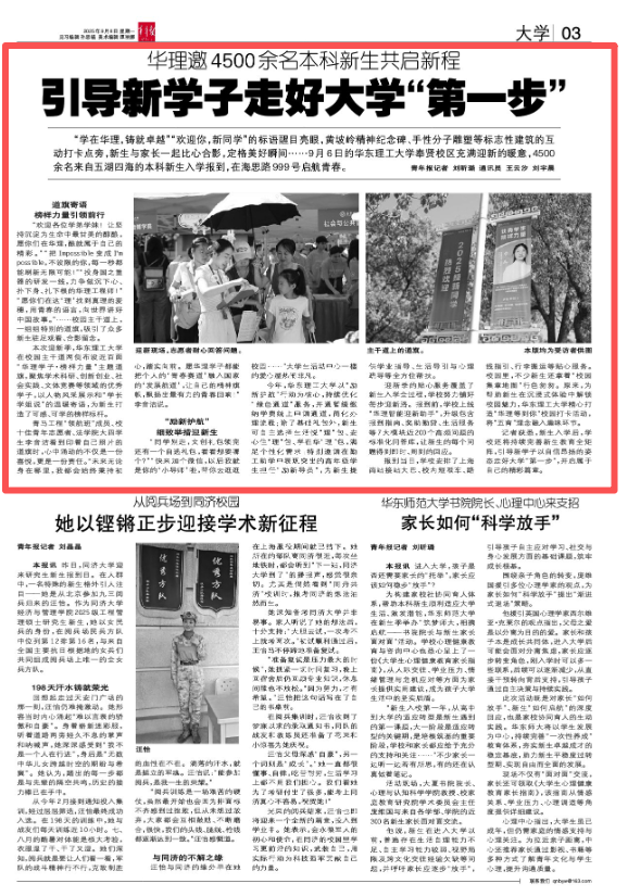 《青年报》华理邀4500余名本科新生共启新程 引导新学子走好大学“第一步”