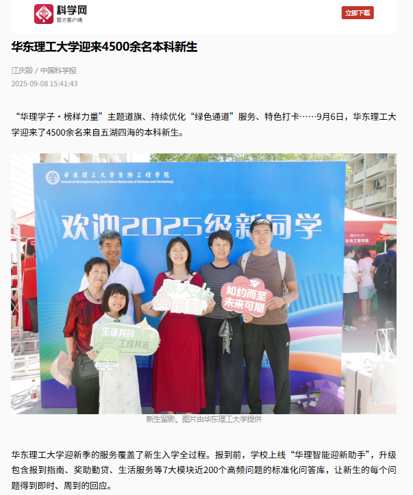 【科学网APP】华东理工大学迎来4500余名本科新生