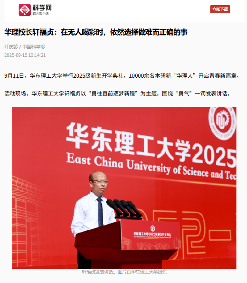 【科学网】华理校长轩福贞:在无人喝彩时,依然选择做难而正确的事