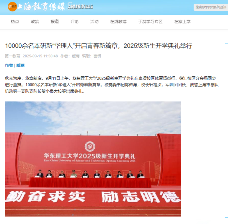 【第一教育】10000余名本研新“华理人”开启青春新篇章,2025级新生开学典礼举行