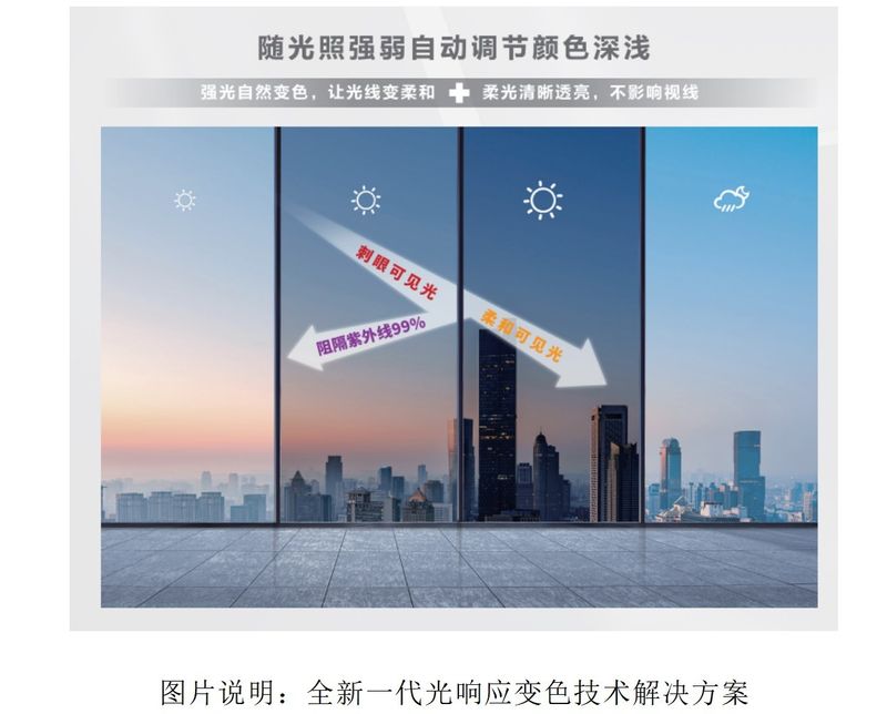 与传统玻璃相比,新一代玻璃在染料分子和制造工艺上实现创新,抗老化、耐晒性能大幅提升,耐久时间可达30年以上。实测显示,其可见光调节范围为4.5%至70%,紫外线阻隔率超99%。夏季能有效隔热,冬季不影响采暖和视野。