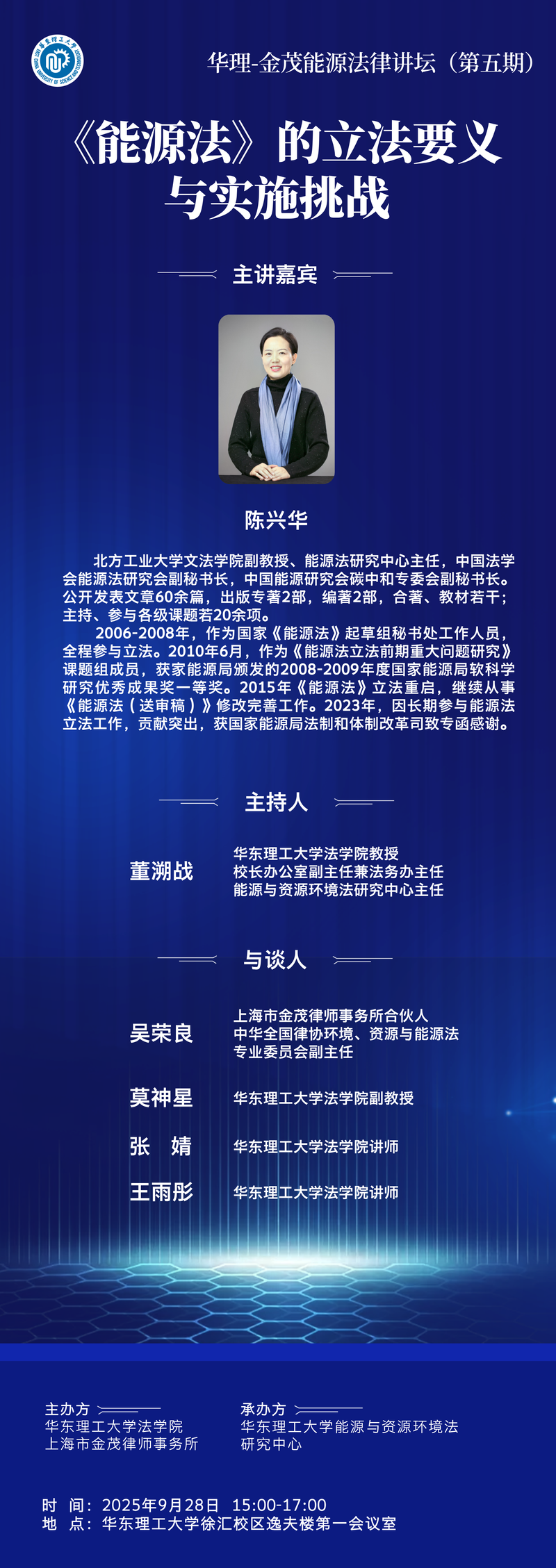 陈兴华 中国法学会能源法研究会副秘书长,中国能源研究会碳中和专委会副秘书长。