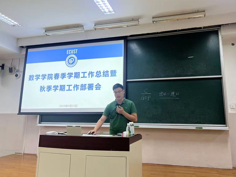 9月23日,数学学院召开2025年秋季学期工作部署会暨教职工理论学习专题报告会,特邀商学院潘春阳老师作题为“从‘制造强国’迈向‘消费大国’——学习《习近平经济文选》第一卷”的专题辅导报告。数学学院党政领导班子成员和全体教职工参加会议。会议由数学学院党委书记鲍亮主持。