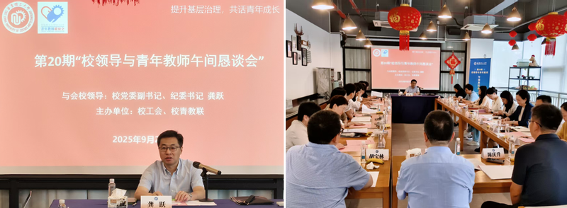 为贯彻落实学校第十二次党代会精神,近日,工会、青教联举办“校领导与青年教师午间恳谈会”,校党委副书记、纪委书记龚跃以“基层治理提升,共话青年成长”为主题,与青年教师就学校治理和青年教师成长等话题进行分享交流。来自相关职能部处和各学院的20余位青年教师代表参加会议。青教联理事长杨雪晶主持了午间恳谈会。