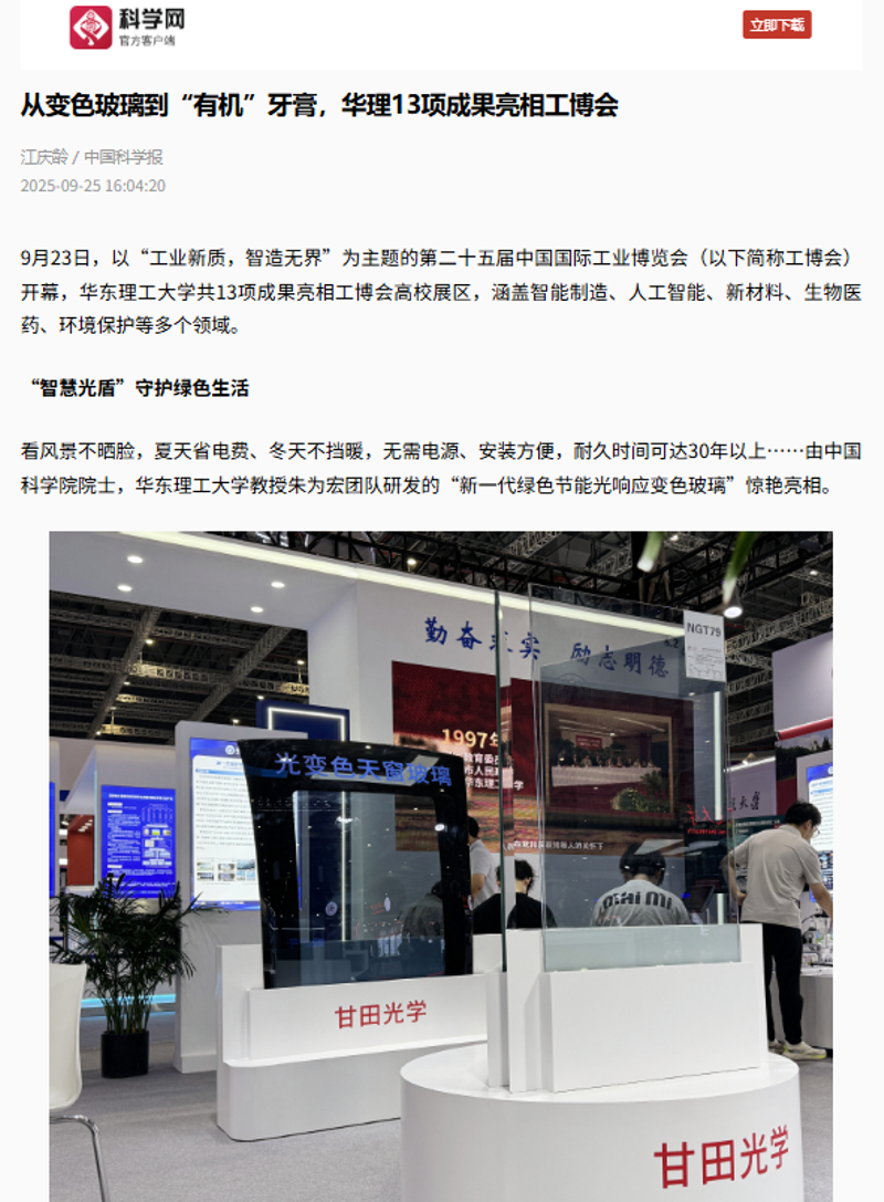 【科学网APP】从变色玻璃到“有机”牙膏,华理13项成果亮相工博会