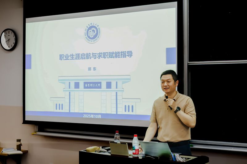 会上,郑东结合学校近年就业数据,从学生毕业去向、就业单位类型与薪资水平等维度展开分析,引导毕业生明确就业方向。他鼓励毕业生树立科学的就业观,结合自身特点与行业趋势,尽早确立职业目标。同时,他系统介绍了校园招聘流程、信息获取渠道及简历投递注意事项,提醒同学们提升面试能力与综合竞争力,从往届优秀学子案例中汲取经验,将就业目标转化为扎实行动,以充分准备迎接求职挑战。
