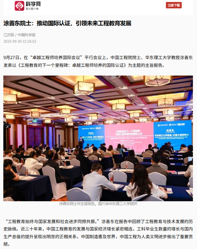 【科学网APP】涂善东院士:推动国际认证,引领未来工程教育发展