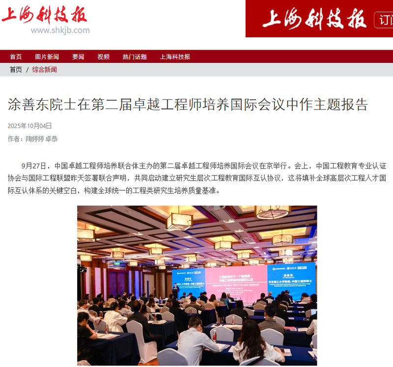 【上海科技报】涂善东院士在第二届卓越工程师培养国际会议中作主题报告