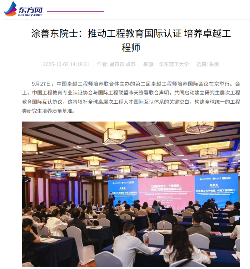 【东方网】涂善东院士:推动工程教育国际认证 培养卓越工程师