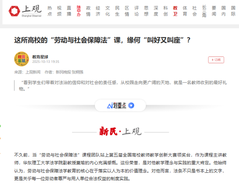 【新民·上观】这所高校的“劳动与社会保障法”课,缘何“叫好又叫座”?