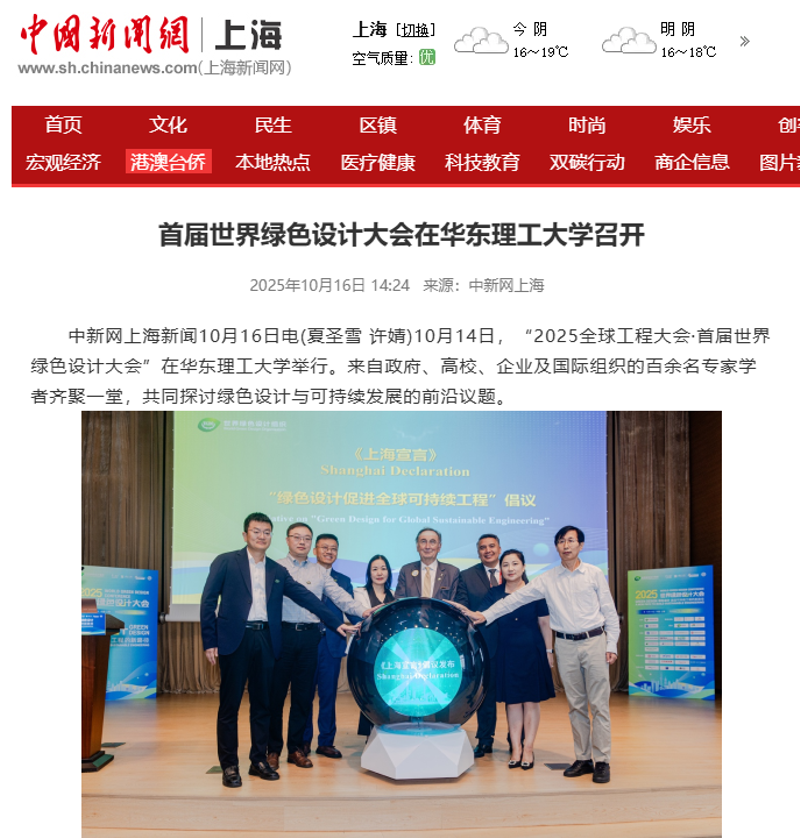 【中国新闻网】首届世界绿色设计大会在华东理工大学召开