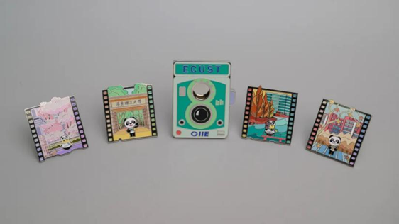 徽章采用复古双反相机形式,镜头轻合拼成数字“8”,是第八届进博会的专属注脚,华理校徽中齿轮元素藏入机身纹路,金属质感间,ECUST与CIIE的深度联结悄然流转。
