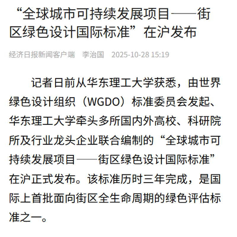 【经济日报客户端】“全球城市可持续发展项目——街区绿色设计国际标准”在沪发布