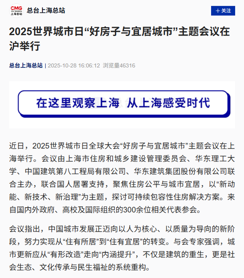 【央视新闻客户端】2025世界城市日“好房子与宜居城市”主题会议在沪举行