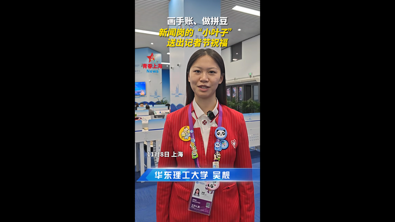 来自华东理工大学的吴靓、陈嫣然,都是进博会新闻中心的“小叶子”。一个拼拼豆,一个做手账,记录了进博全景画卷的点点滴滴。值此中国记者节,她们祝愿各位新闻工作者节日快乐,工作顺利,祝进博会越办越好!(青年报·青春上海记者 刘昕璐)