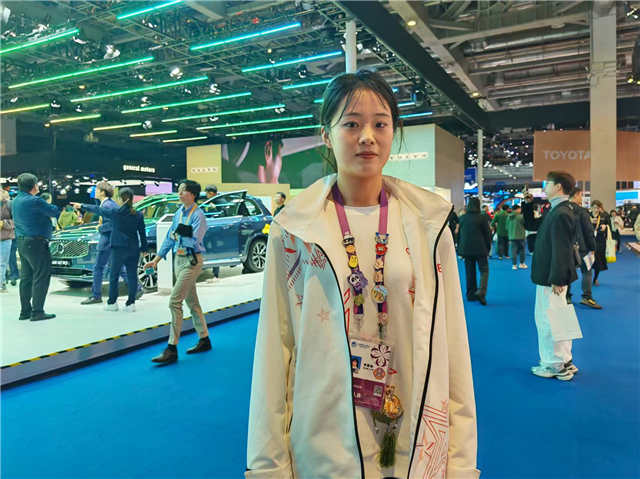 如今,在进博会现场,李箐琳作为一名“小叶子”主要服务于汽车及智慧出行展区。“以前都是在新闻里看进博会,但真正走进来感受完全不一样了,它更像一个浓缩了全球智慧与好物的‘未来生活体验馆’和超级市场。”李箐琳说。
