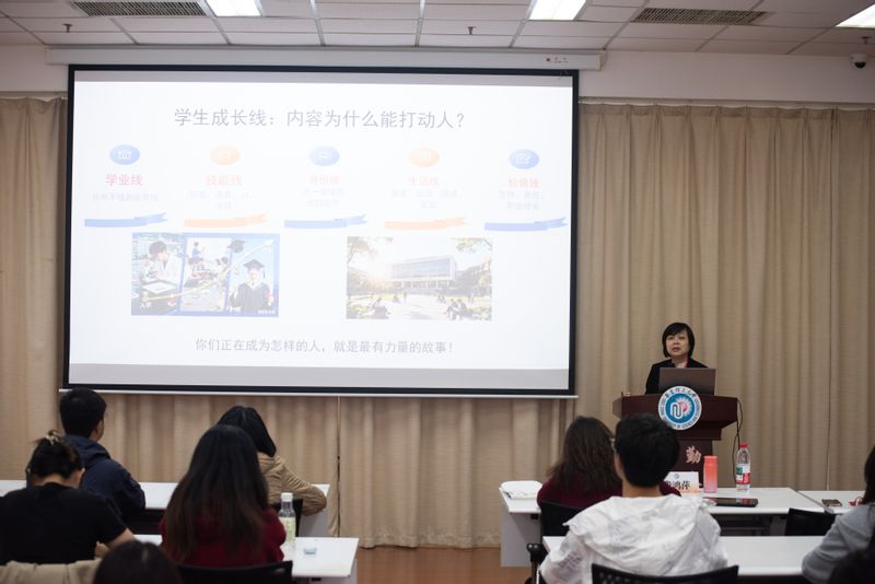 培训中,费鸿萍以“发现华理,记录成长”为主题,系统阐述了选题的重要性。她深入剖析了“华理的价值主轴”,将其视为内容的底层气质与精神内核,并引导学生从自身“成长线”中挖掘动人故事,最终将理论落脚于具体的选题方法与创作实践。通过“六大内容形态”和“六种表现形式”,展现华理新媒体的内容生态,她鼓励同学们记录成长,讲好华理故事,成为更好的自己。