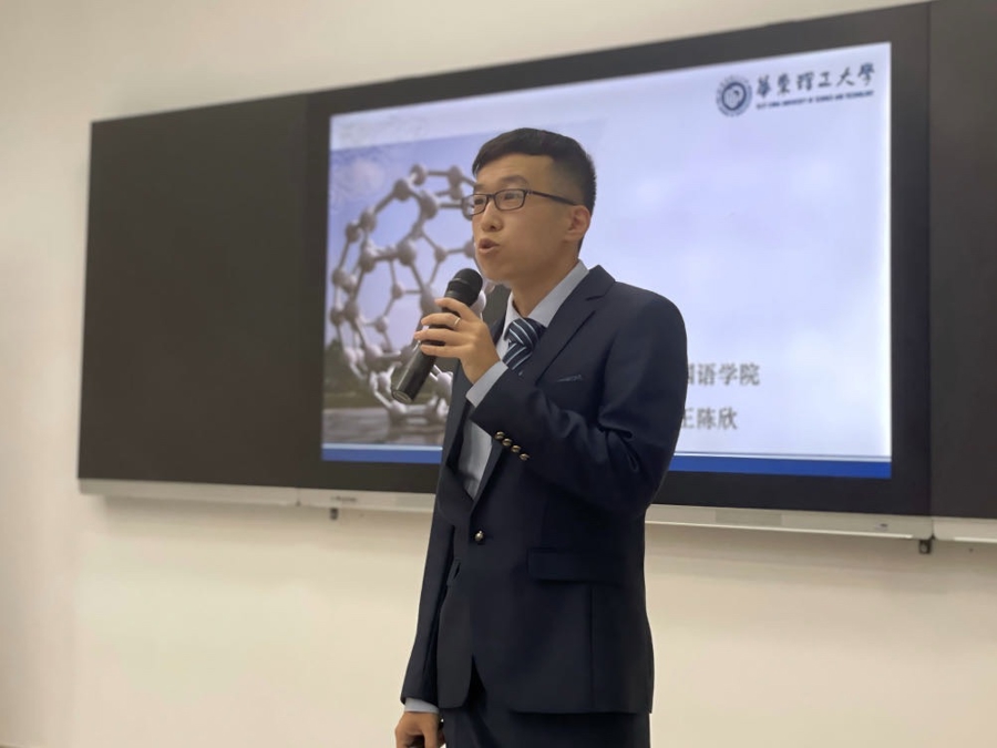他是英语口译课上点子不断的“整活老师”,是带领法语翻译团走进前沿的“先锋向导”,是向留学生娓娓道来中国故事的“文化使者”,也是那个把学校国旗护卫队训练到惊艳全场的“铁血教官”……这位身兼多职、能量满格的“斜杠青年”,正是华东理工大学外国语学院的青年教师王陈欣。