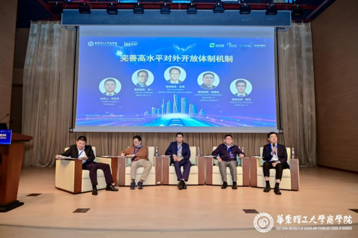圆桌论坛以“完善高水平对外开放体制机制”为主题,由华东理工大学商学院副院长汪冬华教授主持,上海交通大学特聘教授、国家级高层次人才文一,南京大学法学院院长、国务院学术委员会第八届学科评议组成员彭岳,华东师范大学经济与管理学院院长、国家级领军人才、上海市经济学会副会长殷德生,西南财经大学人事处副处长、国家级青年人才、全国高校国际贸易学科协作组青年论坛副秘书长蒋为分别围绕“国际贸易体制形成路径与未来发展新格局”“中美贸易冲突过程中的法律战”“四中全会有关对外开放观点的解析”“高水平对外开放新格局”等前沿热点问题展开讨论。
