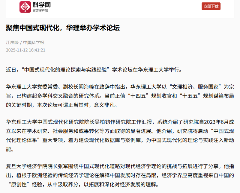 【科学网】聚焦中国式现代化,华理举办学术论坛