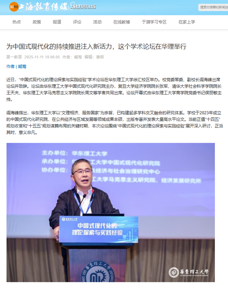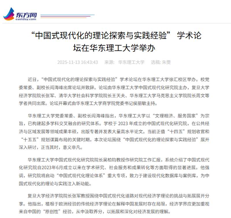 【东方网】“中国式现代化的理论探索与实践经验” 学术论坛在华东理工大学举办