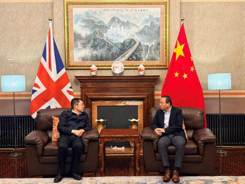 英国利物浦大学校长蒂姆·琼斯、副校长塔里克·阿里亲切会见蒋传海一行。双方回顾了自2016年以来,两校依托诺奖中心在新材料应用领域取得的丰硕合作成果。基于坚实的合作基础与共同的发展愿景,双方签署了新的合作备忘录,共同筹建联合研究中心,进一步整合两校在清洁能源、城市规划、社会治理等领域的优势资源,推动合作迈向新台阶。同期,两校共同举办首届“可持续城市与治理”研讨会,我校资环、商、社会、艺术等学院8位青年教师受邀参会。我校同利物浦大学的务实合作受到了中国驻曼彻斯特总领馆的高度认可,总领事唐锐在官邸会见蒋传海一行,并正式邀请我校参加2026年在英国举办的中英清洁能源国际研讨会,为全球绿色能源治理与可持续发展贡献智慧与力量。