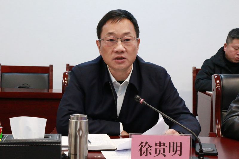 图片说明:寻甸县委书记徐贵明在座谈会上讲话