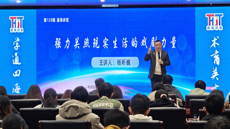 11月18日,华东理工大学第128期“通海讲堂”在奉贤校区举办,本次活动邀请上海应用技术大学艺术与设计学院院长杨昕巍教授担任主讲嘉宾,以“强力关照现实生活的戏剧力量”为题,为广大华理师生带来一场兼具思想深度与艺术感染力的讲座。来自各学院的近 200 名师生现场参与。我校艺术设计与传媒学院院长汪军教授出席并致辞。活动由艺术学院党委副书记孙健主持。