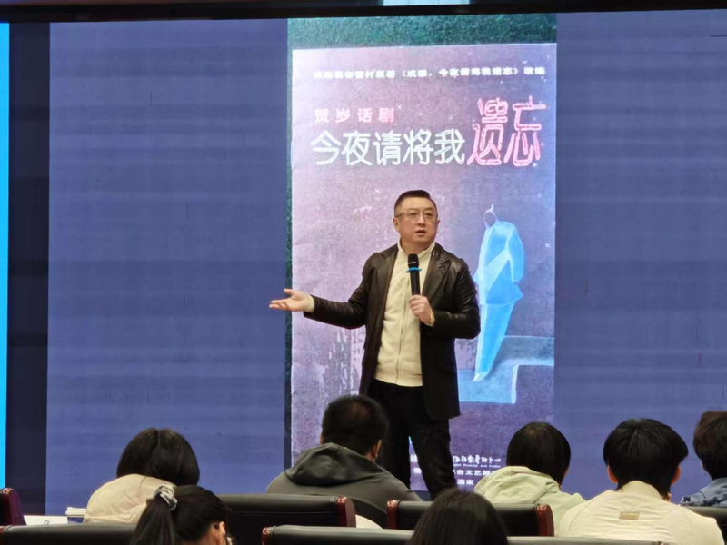 围绕“戏剧关照现实”的核心,杨昕巍结合自身创作经历,分享了《成都,今夜请将我遗忘》《天堂向左,深圳往右》等作品的改编历程。他强调,戏剧艺术是反映时代精神的“活化石”,既要弘扬真善美、鞭挞假丑恶,也要直面当代青年的迷茫与挣扎,为心灵提供“终极关怀”。他以红色戏剧《赤水河上的密电码》为例,阐述了如何通过挖掘历史细节与人物情感,让红色文化摆脱刻板印象,实现思想性与艺术性的统一。此外,他还探讨了戏剧艺术与设计学科的跨界融合,提出设计作品可通过融入戏剧性故事,增强文化底蕴与情感共鸣。他的讲座不仅让师生深入领略了戏剧艺术的独特魅力,更引发了关于现实生活、文化传承与人生价值的深度思考。