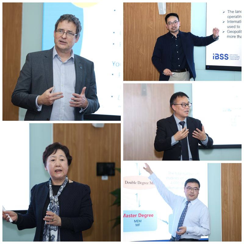在主题分享环节,堪培拉大学商政法学院执行院长乌韦·杜勒克(Uwe Dulleck)、西交利物浦大学西浦国际商学院院长方世豪(Eddy Fang)、温州肯恩大学商务与公共管理学院院长陈庆佳(Hing KaiChan)、上海大学悉尼工商学院国际部主任顾浩东、我校商学院中澳MBA项目学术主任黄庐进先后发言,结合各自院校在地国际化的实践探索,围绕课程建设、师资协同、人才培养、跨文化融合等核心议题展开深入交流与分享。