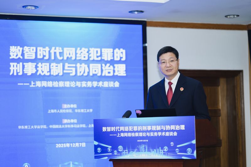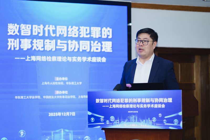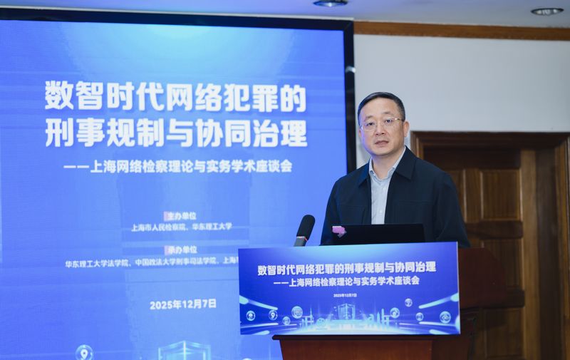 12月7日,由上海市人民检察院、华东理工大学主办,我校法学院、中国政法大学刑事司法学院、上海市徐汇区人民检察院承办的数智时代网络犯罪的刑事规制与协同治理学术座谈会召开。上海市人民检察院党组成员、副检察长胡春健,上海市徐汇区人民检察院党组书记、代理检察长孙军,中国政法大学副校长刘艳红,我校党委副书记沈海涛以及来自司法机关、高校科研院所、律所及行业协会的专家学者与实务工作者,围绕网络犯罪治理前沿议题展开热烈研讨。