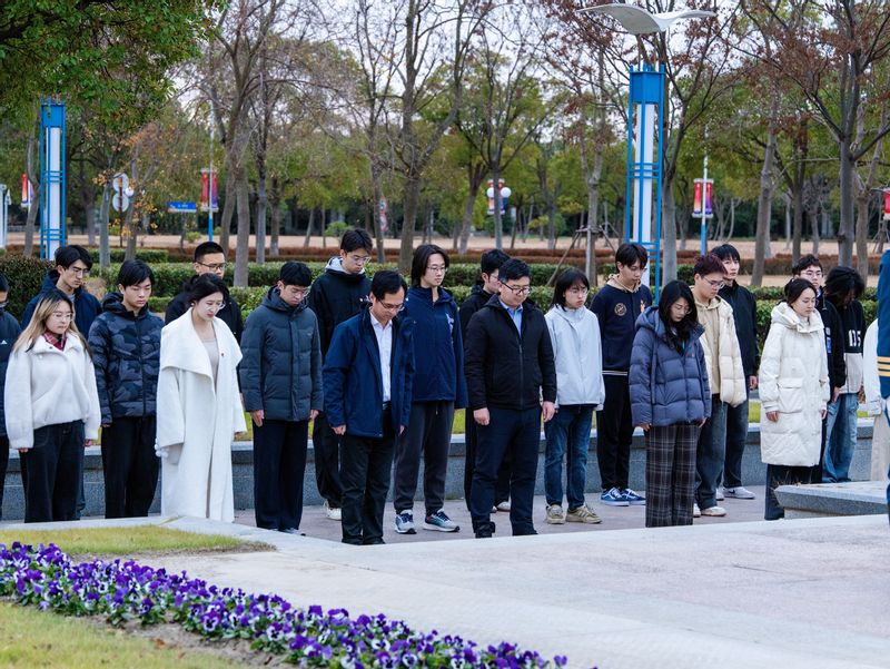为缅怀南京大屠杀死难者与所有惨遭日本侵略者杀戮的同胞,引导师生铭记历史、珍爱和平、明确时代责任、勇担复兴使命,数学学院于12月13日清晨在奉贤校区举办“铭记历史、不忘国耻,珍爱和平、开创未来”主题升旗仪式。奉贤校区管委会办公室副主任钊旭、党委学生工作部副部长饶志雄、数学学院党委副书记王帅、辅导员郭钥娴、数学学院与法学院本科生代表以及学生党员共同参与了此次活动。