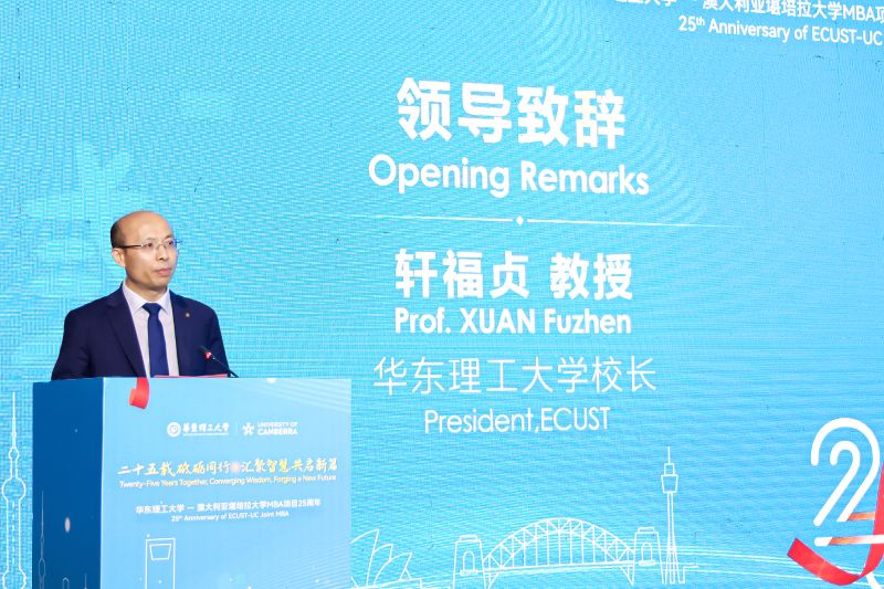 12月7日,华东理工大学-堪培拉大学MBA项目(以下简称“中澳MBA项目”)25周年庆祝活动在上海举行。活动以“二十五载砥砺同行 汇聚智慧共启新篇”为主题,华东理工大学校长轩福贞、堪培拉大学校长比尔·肖滕、澳大利亚驻华使馆公使兼副馆长费致远出席活动并致辞。华东理工大学副校长阎海峰主持活动。两校领导、教师代表、各界嘉宾以及校友代表等齐聚一堂,共叙合作情谊,共话未来发展。