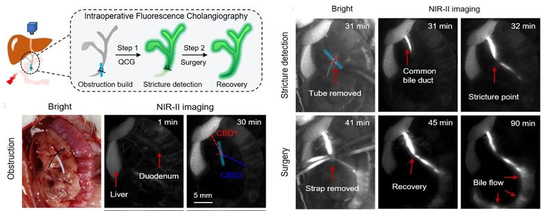 近日,我校化学与分子工程学院朱为宏院士、郭志前教授团队在原创性荧光手术导航造影剂领域取得重要研究进展。研究团队创新提出蛋白驱动分子探针重组装策略,发展了针对胆汁特异性激活的新型近红外二区荧光造影剂,相关研究成果以“Protein-Triggered Reassembly of Quinocyanine Nanosheets forIntraoperative NIR-II Cholangiography”在线发表于《德国应用化学》,并被选为Hot Paper。