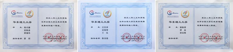 12月13日,2025年全国大学生数学建模竞赛上海赛区颁奖会顺利举行。我校学子喜获佳绩,其中数学学院韩卓播、张航嘉、翟逸伟组成的参赛团队荣获全国一等奖;数学学院郁振祺、谭磊、涂良熙团队与信息科学与工程学院汪佳弈、雷敖坤、王弘团队均荣获全国二等奖。此外,我校还获上海市级奖项30余项。