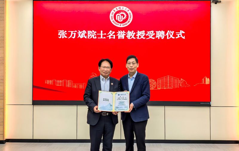 12月25日下午,我校杰出校友、中国科学院院士、上海交通大学讲席教授张万斌重回母校,受聘为华东理工大学名誉教授。聘任仪式于徐汇校区实验三楼举行。副校长李春忠出席仪式,为张万斌院士颁发聘书并佩戴校徽。中国科学院院士、校学术委员会主任田禾,中国科学院院士、校党委常委、副校长朱为宏共同出席仪式。仪式由化学与分子工程学院院长马骧主持。
